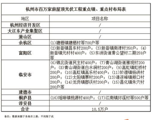 杭州市百萬家庭屋頂光伏工程重點鎮(zhèn)、重點村分布圖