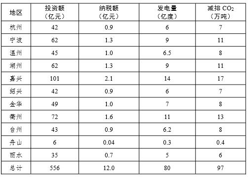 根據(jù)浙江省光伏項目規(guī)劃目標(biāo),預(yù)計到2020年光伏項目投資總額達550億元左右;項目建成后每年將提供清潔電力80億千瓦時,減少CO2排放97萬噸,每年增加稅收約12億元。此外還將帶動浙江省電網(wǎng)配套建設(shè)、運行管理等延伸產(chǎn)業(yè)的發(fā)展,提供大量的勞動就業(yè)機會,其中設(shè)備制造、工程施工、運行管理環(huán)節(jié)吸納的勞動力最多。估算至2020年浙江省光伏發(fā)電項目將創(chuàng)造2萬個以上的就業(yè)崗位。