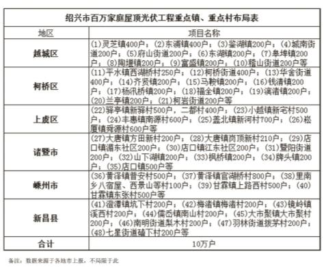 紹興市百萬家庭屋頂光伏工程重點鎮(zhèn)、重點村分布圖
