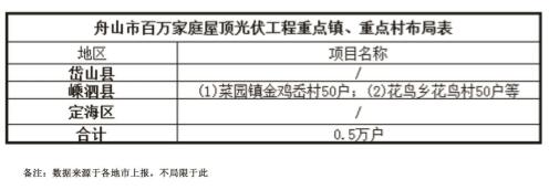 舟山市百萬家庭屋頂光伏工程重點鎮(zhèn)、重點村分布圖
