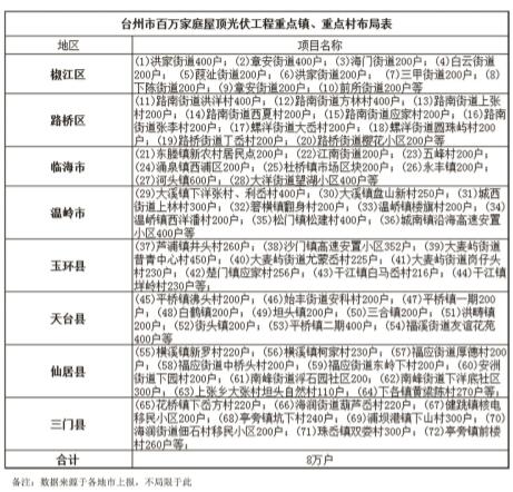 臺州市百萬家庭屋頂光伏工程重點鎮(zhèn)、重點村分布圖