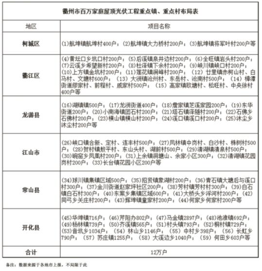 衢州市百萬家庭屋頂光伏工程重點鎮(zhèn)、重點村分布圖