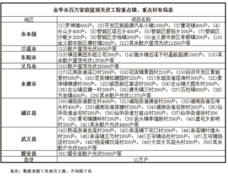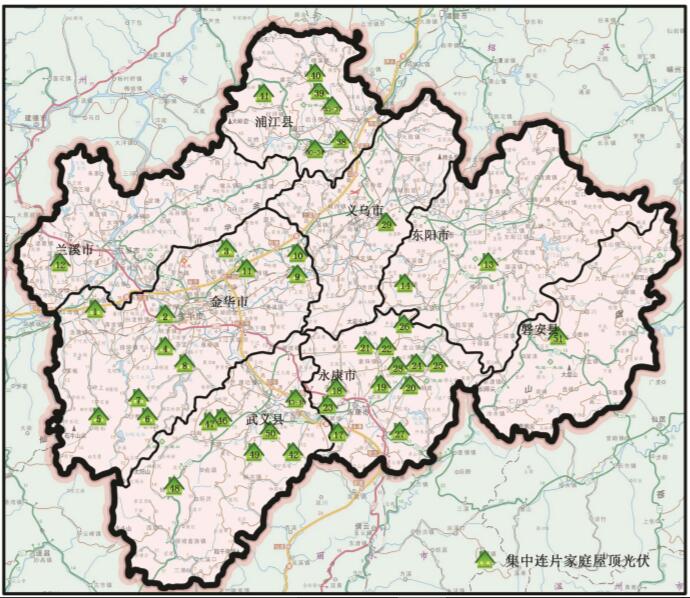 金華市百萬家庭屋頂光伏工程重點鎮(zhèn)、重點村分布圖