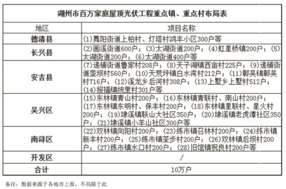 湖州市百萬家庭屋頂光伏工程重點鎮(zhèn)、重點村分布圖