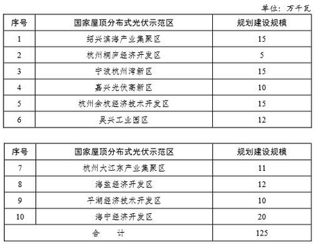 表1—2 浙江省國家屋頂分布式光伏示范區(qū)列表