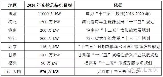 目前也有很多省份出臺(tái)了本省的相關(guān)規(guī)劃,提出光伏發(fā)電的發(fā)展目標(biāo)。