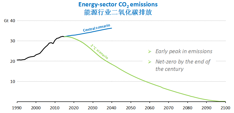 盡管困難重重,報告仍認為《巴黎協定》將會轉變未來幾十年的全球能源體系發展格局,為低碳發展和能源轉型提供了機遇。從各細分領域來看,未來煤炭行業不斷走低,油氣領域機遇與挑戰并存,可再生能源前景則更加廣闊。2016年,中東占全球石油產量的份額達近40年來最高,與此同時,隨著天然氣市場轉型不斷加深,液化天然氣(LNG)扮演起更重要的角色。在發電領域,2015年可再生能源新增裝機已經超過了天然氣、石油和核能發電的總和,到2040年,以可再生能源為主的低碳燃料和技術將滿足將近一半的新增能源需求。
