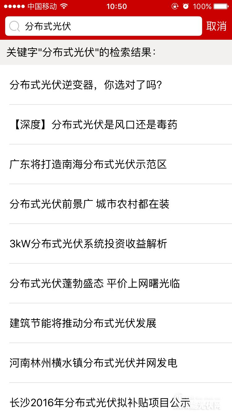 舉個例子,當我們在這一款高科技行業手機APP軟件界面當中搜索“分布式光伏”相關新聞信息時,能夠搜索到分布式光伏、光伏補貼等最新最前沿的資訊信息與動態。