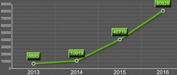 據深圳交警權威發布,2016年,深圳市新能源汽車保有量為80828輛,與2015年相比,增加40109輛, 增長98.50%。其中,純電動汽車保有量44099輛,占新能源汽車總量的54.55%,與2015年相比,增加21360輛,增長93.93%。