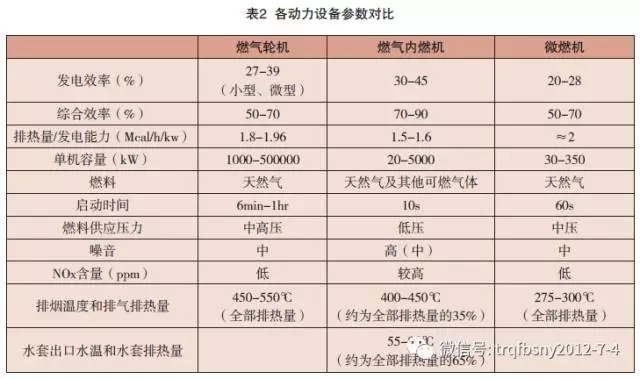 表2將一般用于天然氣分布式能源系統(tǒng)的三種動力設(shè)備的主要參數(shù)列出,便于對比。