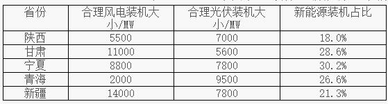 表2 2020年西北區(qū)域保證新能源正常消納合理裝機表