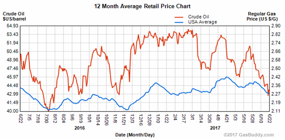 國內(nèi)價(jià)格持續(xù)下調(diào),另一個(gè)大背景是國際石油價(jià)格的暴跌。6月21日,8月份交貨的紐約期貨價(jià)格已經(jīng)跌至42.53美元一桶。紐約原油期貨價(jià)格已跌至每桶44美元附近,與5月23日價(jià)格相比下跌了16%;布倫特原油期貨價(jià)格跌至每桶46美元附近,與5月23日價(jià)格相比下跌了15%。