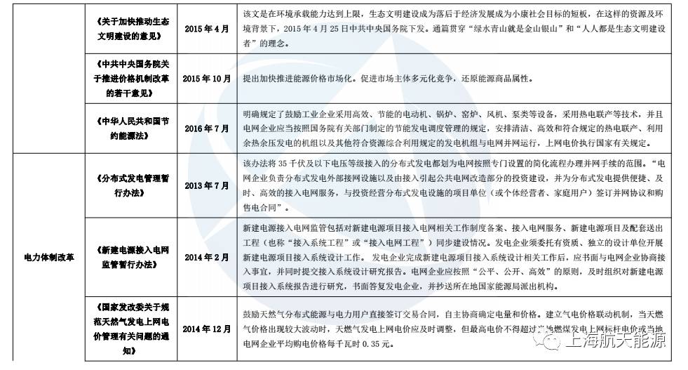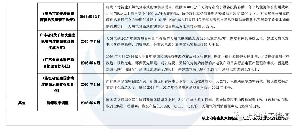 這些文件中,有國(guó)家能源結(jié)構(gòu)等整體規(guī)劃,有天然氣分布式行業(yè)的指導(dǎo)性意見和分布式有關(guān)的電力、天然氣基建等外圍行業(yè)改革方向,以及地方上落實(shí)國(guó)家政策的扶持辦法。