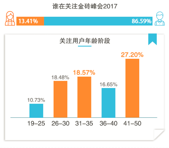 UC大數據顯示,關注金磚峰會2017的用戶中,男性占比超過八成。年齡方面,以41-50歲的用戶居多。