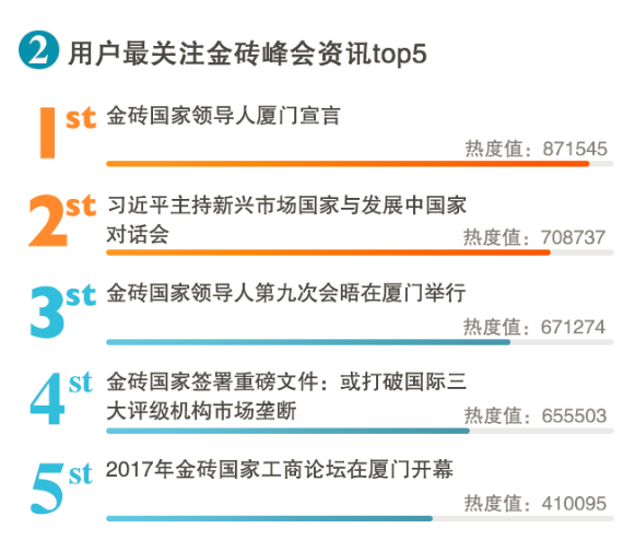 《金磚國家領導人廈門宣言》成用戶最聚焦的資訊