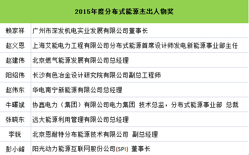 為肯定和表彰本年度在中國(guó)分布式能源領(lǐng)域做出突出貢獻(xiàn)的企業(yè)與個(gè)人,由中國(guó)能源網(wǎng)發(fā)起、會(huì)議主辦方大力支持的“2015(第十一屆)分布式能源國(guó)際論壇獎(jiǎng)項(xiàng)評(píng)選”活動(dòng)結(jié)果在會(huì)議期間正式公布。獎(jiǎng)項(xiàng)分為:2015年度中國(guó)分布式能源優(yōu)秀項(xiàng)目獎(jiǎng)、優(yōu)秀設(shè)計(jì)單位獎(jiǎng)、杰出貢獻(xiàn)人物獎(jiǎng)。