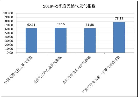2018年2季度中國天然氣行業景氣指數為62.11,處于較景氣狀態,與2018年1季度相比有一定幅度的上升,景氣變動系數為1.035。在評價行業景氣指數的五大指標中,宏觀經濟指標基本保持不變,天然氣銷售公司經營狀態指標有一定幅度上升,天然氣行業專家判斷指標、天然氣生產企業經營狀態指標出現較大幅度上升,而天然氣進口狀態指標出現下降?傮w來看,2018年2季度中國天然氣行業景氣指數仍呈現上升態勢。 [詳細]