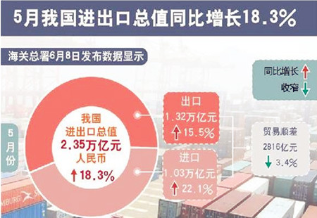 5月進出口雙雙延續正增長 指數顯示出口形勢較樂觀