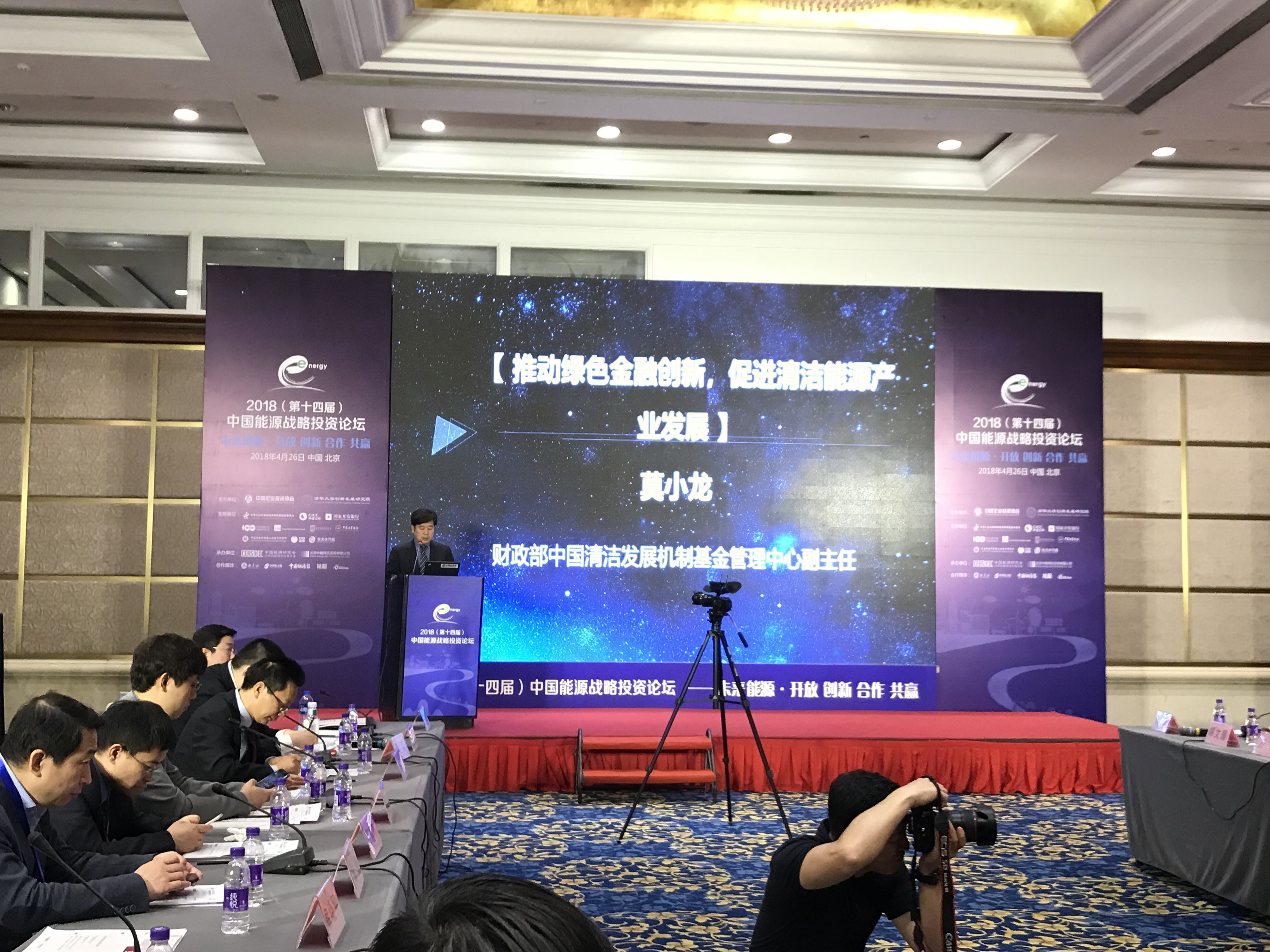 財(cái)政部中國(guó)清潔發(fā)展機(jī)制基金管理中心副主任莫小龍發(fā)表主旨演講《推動(dòng)綠色金融創(chuàng)新,促進(jìn)清潔能源產(chǎn)業(yè)發(fā)展》: