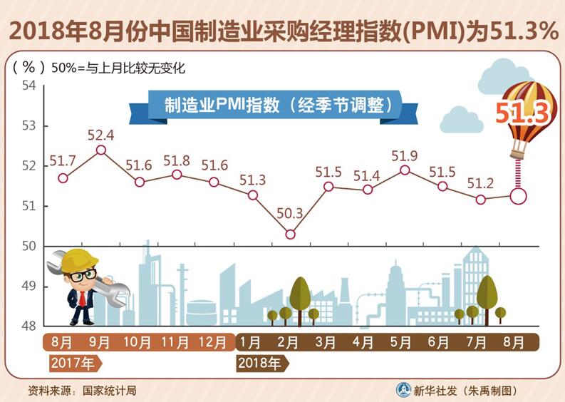 8月制造業(yè)PMI為51.3%