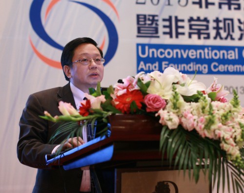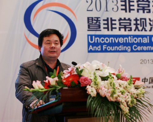 韓曉平:我們選擇今天這個日子來成立非常規油氣聯盟,是有特殊意義的。在座的誰知道今天這個日子對石油人來說有什么特殊的意義?今天是2013年11月15日,1970年11月15日是王鐵人去世的日子。所以今天在一定程度上,我們在繼承鐵人的遺志,把石油的事情做好。
